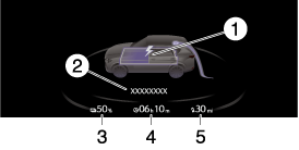 Lorsque la charge est lancée, l'écran d'état de charge s'affiche. L'écran d'état de charge disparaît après un certain temps ou lorsque les portières ou le hayon sont verrouillés. L'écran s'affiche à nouveau lorsque les portières ou le hayon sont déverrouillés.