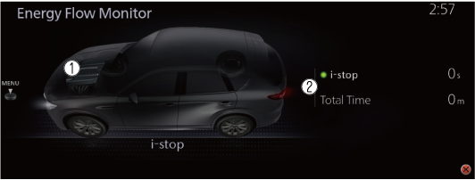 Affiche l'état de fonctionnement de la fonction i-stop dans la zone moteur. La zone moteur s'allume lorsque l'arrêt du ralenti du moteur n'est pas en marche et elle ne s'allume pas lorsque l'arrêt du ralenti du moteur est en marche.