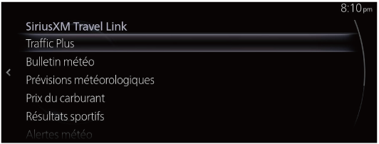 Les véhicules Mazda correctement équipés recevront également les services d'infodivertissement SiriusXM suivants : Trafic, météo, résultats sportifs, prix de l'essence, et plus encore. Pour obtenir une liste des fonctions disponibles dans votre véhicule, visitez le site SiriusXM.com/infotainment et profitez au maximum de votre expérience de conduite.