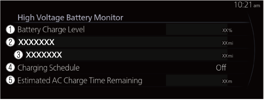 L'affichage de la distance maximale de conduite pour la batterie haute tension est indiqué.