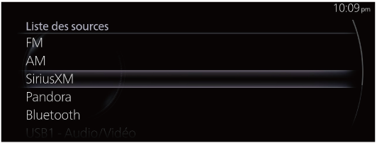Sélectionner “SiriusXM” sur l'écran Liste des sources.
