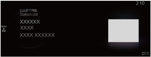 Affiche la liste des Favorites pour DAB. La liste des stations de radio enregistrées dans vos Favorites s'affiche et vous pouvez sélectionner le contenu que vous souhaitez écouter. Si vous n'avez pas de Favorites enregistrés, une liste vide s'affiche. Se référer à Favoris (Rechercher) pour la méthode d'enregistrement des Favorites. |