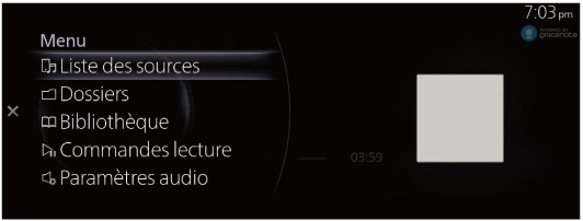 Pour définir la pochette de l'album, utiliser les “Paramètres” de Mazda Connect ou faire appel à un concessionnaire agréé Mazda.