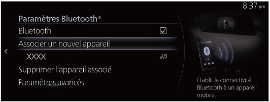 En ce qui concerne la connexion de votre appareil Bluetooth® au Bluetooth®, toujours se référer au manuel d'utilisation de l'appareil Bluetooth®.