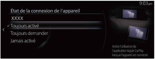 Permet de configurer les paramètres d'Apple CarPlay pour les appareils connectés. |