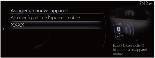 Sélectionner “Mazda” affiché dans la liste des résultats de recherche de l'appareil Bluetooth® et confirmer le code d'accès ou entrer le code d'accès.