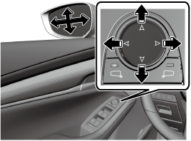 Appuyer sur le bouton de sélection situé sur le côté du rétroviseur extérieur à régler.