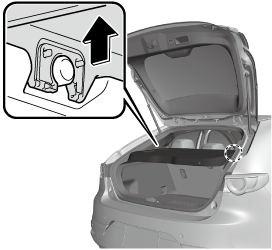 Pour ouvrir le cache et faciliter l'accès au compartiment à bagages lors de l'ouverture du hayon, accrocher les cordelettes aux endroits prévus sur le hayon.