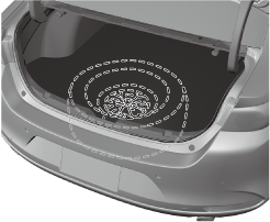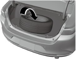 Placer le tapis de coffre (4 portes) ou le tapis de compartiment à bagages (5 portes) sur la roue endommagée.