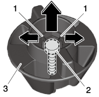 À l'aide de la clé à écrou, retirer l'enjoliveur central en tapotant dessus depuis l'arrière de la roue.