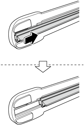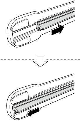3. Faire glisser le balai dans le sens indiqué par la flèche tout en appuyant sur la languette du bras de l'essuie-glace pour retirer le balai.