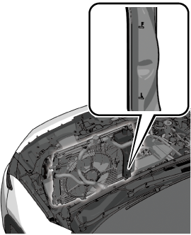 Si le niveau se trouve au niveau ou à proximité du repère L, ajouter suffisamment de liquide de refroidissement spécifié dans le réservoir de liquide de refroidissement pour la protection contre le gel et la corrosion et porter le niveau jusqu'au repère F.
