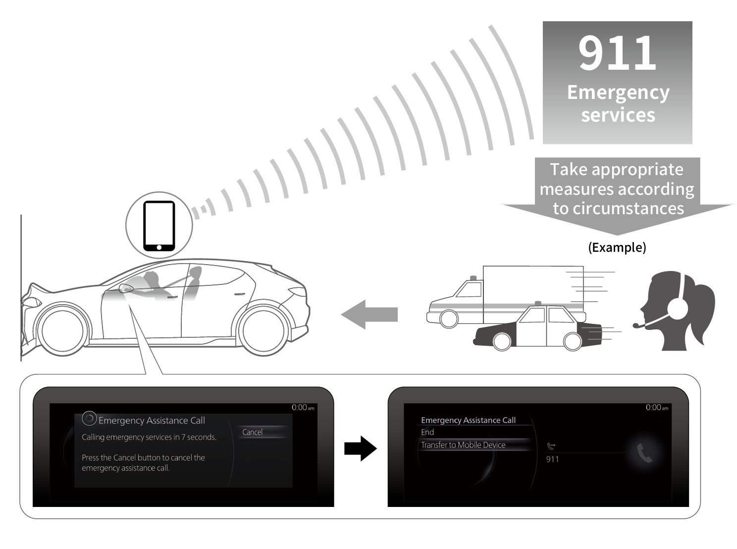 The Automatic 911 dialing service is available even if you are not subscribed to Connected Service. For details, refer to the Mazda Connect Owner’s Manual.
