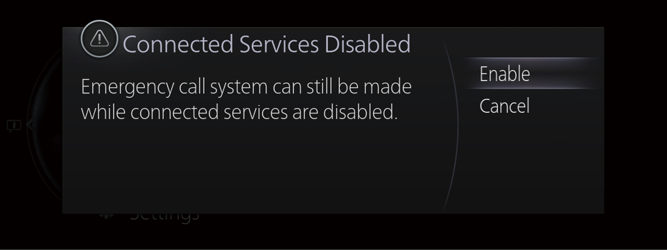 • If the power switch is switched OFF while the onboard communication unit is disabled, a notification that the Connected Service is disabled will be displayed on the center display the next time the power switch is switched ON.