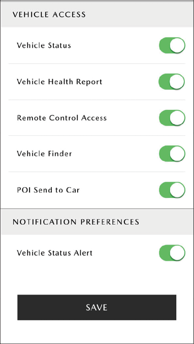 Primary Driver can set [VEHICLE ACCESS], which involves vehicle access, remote operations and so on, as well as [NOTIFICATION SETTINGS], which involve vehicle condition.