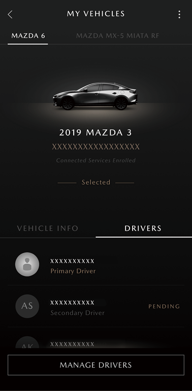 • If a primary driver invites other users, invited users are displayed in the DRIVERS tab on the MY VEHICLES screen of the Primary Driver. If an invited user has not accepted an invitation yet, [PENDING] is displayed.