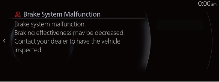 If a malfunction occurs with the vehicle, notifications of the malfunction conditions are as follows: