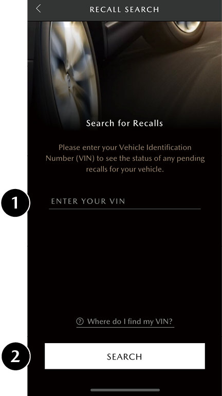2 Vehicle Name Displays the vehicle name, model year, and VIN, and whether you are enrolled in Connected Service.
