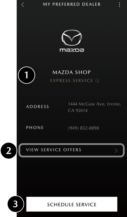 3 SCHEDULE SERVICE Displays the service-in reservation screen to My Preferred Dealer.