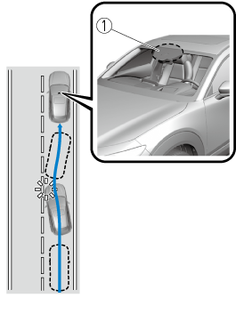 The LDWS alerts the driver that the vehicle may be deviating from its lane. The system detects the white (yellow) lines on the traffic lane using the forward sensing camera (FSC) and if it determines that the vehicle might be deviating from its lane, it notifies the driver by the LDWS.