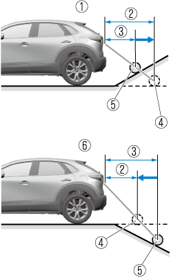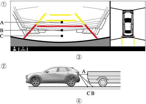If the vehicle is on a slope, obstructions taken by the camera can appear farther or closer than the actual distance from the vehicle.