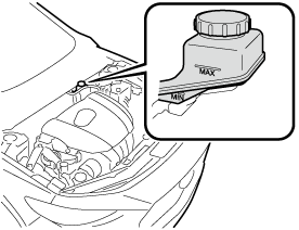 Inspect the fluid level in the reservoir regularly. It should be kept between the MAX and MIN lines.