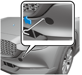Wrap a flathead screwdriver or similar tool with a soft cloth to prevent damage to a painted bumper, and open the cap located on the front or rear bumper.