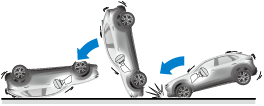 L'illustration suivante est un exemple d'un accident qui ne pas être détecté comme un capotage. Par conséquent, il est possible que les dispositifs de prétension de ceinture de sécurité et rideaux de sécurité ne se déploient pas.
