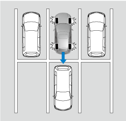 La fonction de détection arrière détecte les obstacles à l'aide des capteurs ultrasoniques arrière. En outre, si votre véhicule risque de heurter un objet cible à l'arrière lorsque vous effectuez une marche arrière, vous êtes averti du danger possible par un avertissement sonore et une indication d'avertissement sur l'affichage.