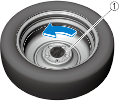 Si le boulon de fixation de la roue de secours ne peut pas être desserré, tenir le bord du pneu et tourner le boulon dans le sens inverse des aiguilles d'une montre jusqu'à ce que le boulon de fixation de la roue de secours tourne.