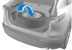 9. Mettre le pneu à plat dans le hayon sur le côté gauche vers l'arrière.